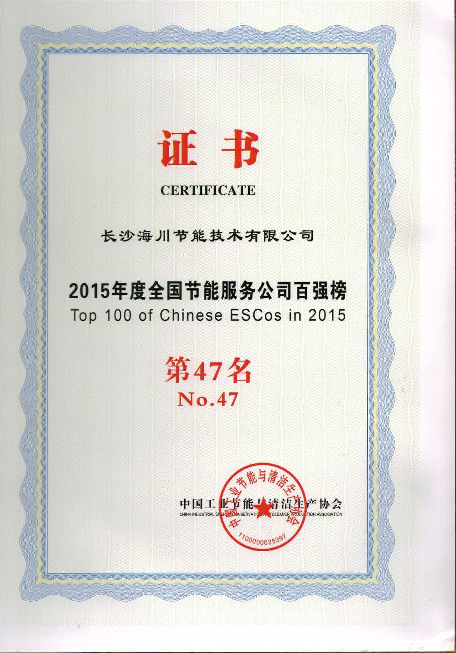 2015年12月,“中國節(jié)能服務(wù)產(chǎn)業(yè)發(fā)展論壇暨2015中國節(jié)能服務(wù)公司百強(qiáng)榜發(fā)布會”在四川成都舉行,中國工業(yè)節(jié)能與清潔生產(chǎn)協(xié)會發(fā)布了2015年度中國節(jié)能服務(wù)公司百強(qiáng)榜榜單及研究報(bào)告。山水集團(tuán)下屬分公司海川節(jié)能以豐富的節(jié)能成果,榮獲2015全國節(jié)能服務(wù)百強(qiáng)企業(yè)。